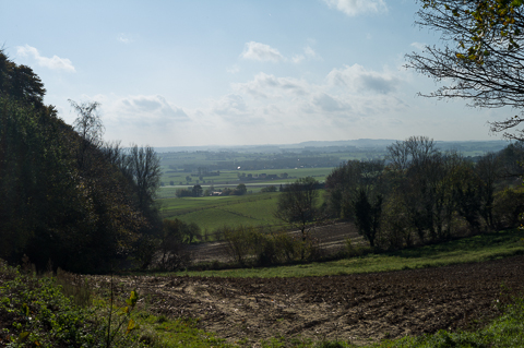 Die Hügelkette wirkt auf mich recht heimatlich: Sie erinnert mich an das Remstal, das Karl Haug (und Marie Haug) sicherlich sehr gut kannte. Leider weiß ich nicht, bei welchem Wetter er durch diese Gegend ging. Es dürfte wahrscheinlich schlechter gewesen sein als die wundervollen Spätherbsttage, die ich photographierte, denn der Herbst 1914 war allgemein regnerisch und neblig.
