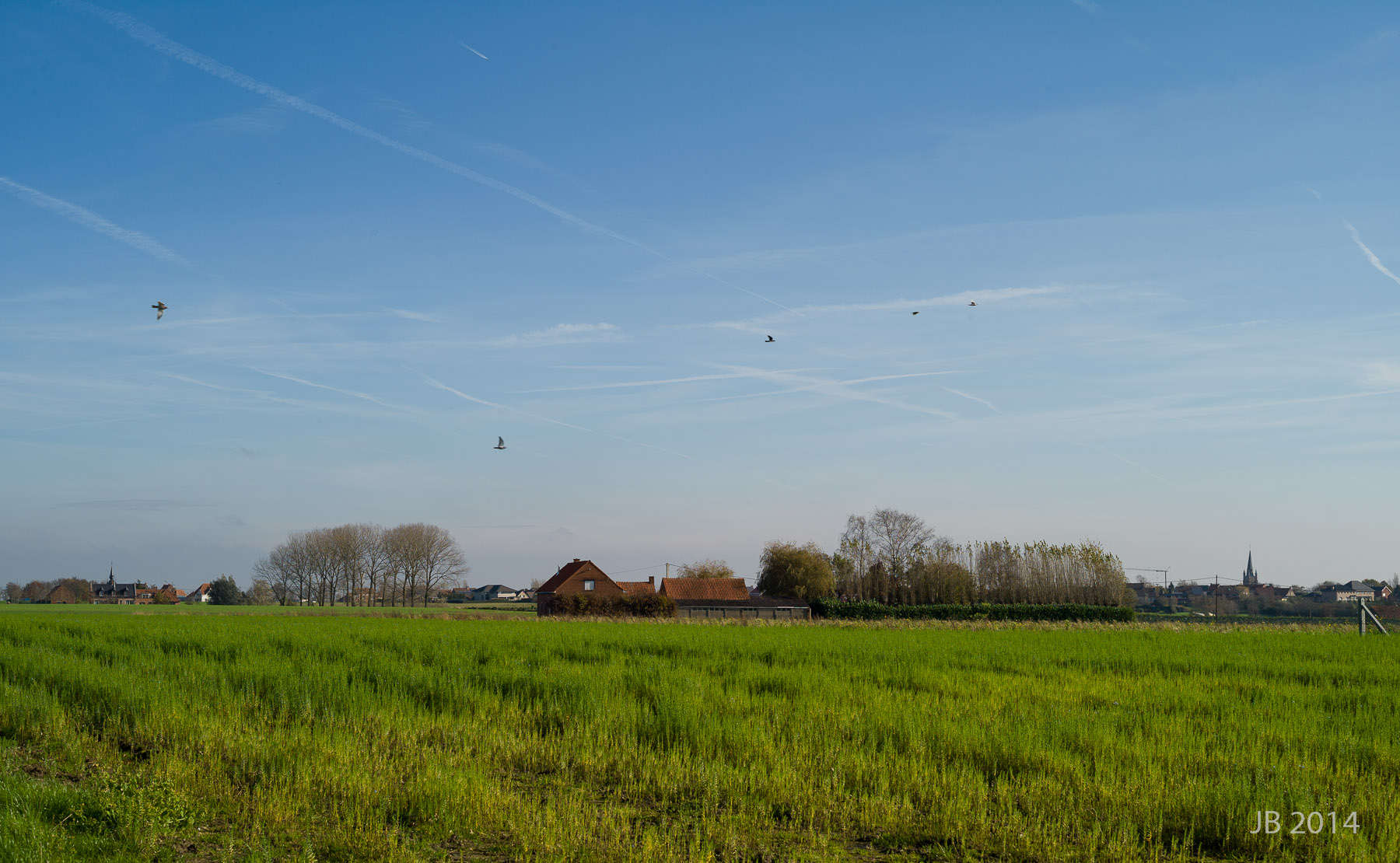 Zum Schluß ein Bild südlich von Beseleare in der Gegend von Poezelhoek. Schloß und Park Polderhoek, wo Karl Haug am 11. November 1914 (wahrscheinlich) beigesetzt wurde, liegen westlich von hier. Dort verläuft heute das Ende der Ausbaustrecke der Autobahn A 19, eine 15 m tiefe Rinne in der Landschaft.