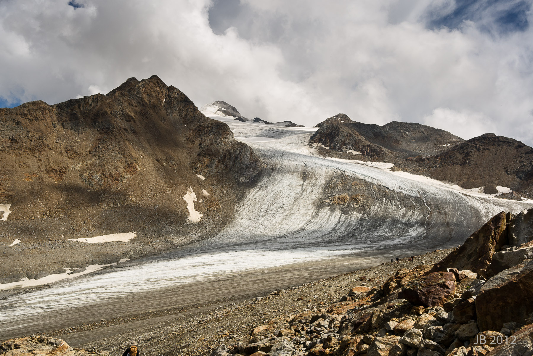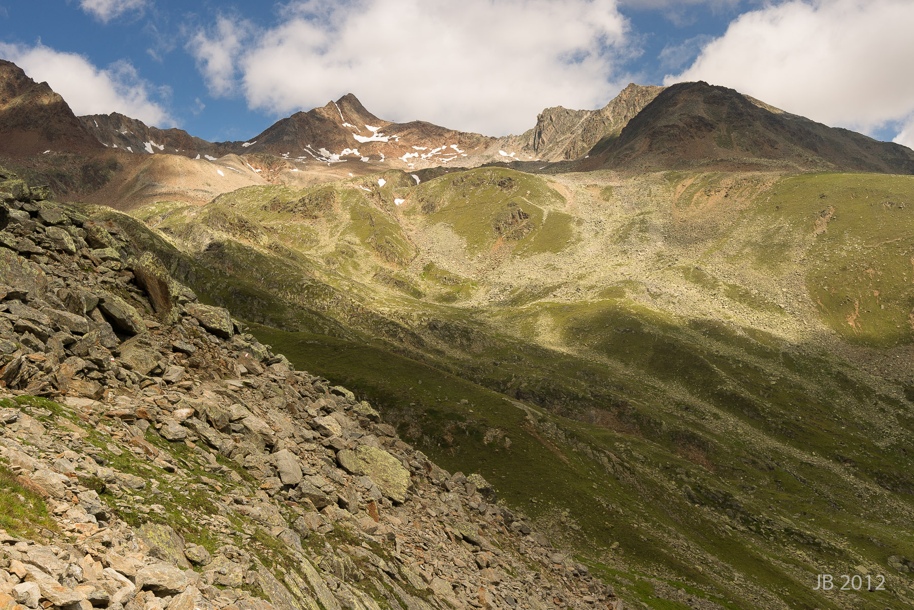 Nachdem die vorangegangen Tage recht feucht und unbeständig waren, kam die Sonne durch. Wir sind am Rettenbachferner endgültig vom E5 abgeschwenkt auf die Via Alpina. Die Bilder sind von 2 Tagen über Vent, Martin-Busch Hütte, Similaun Hütte zum Vernagt Stausee..
