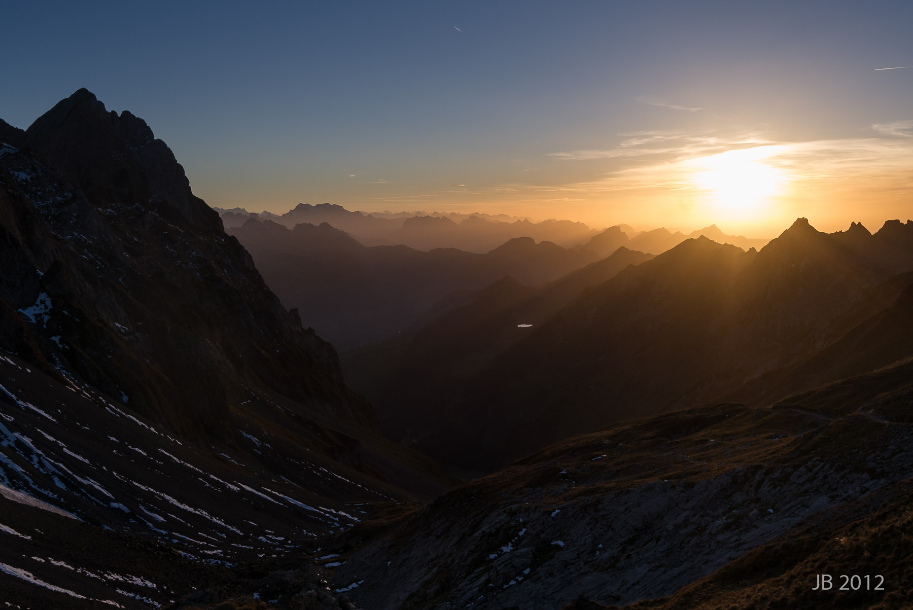 Die Wochenendwanderung mit Kollegen wurde aus Termingründen so unsinnig spät angesetzt, daß wir das letzte Wochenende mit Hüttenbetrieb erwischten. Aber das Wetter war unschlagbar: herbstlich und sonnig.